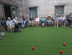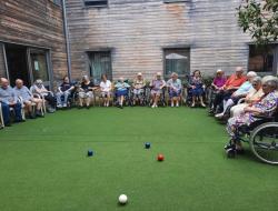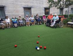 A la belle saison, nous profitons des extérieurs de la résidence pour mettre en place des activités pleines air, comme le jeu de la pétanque.